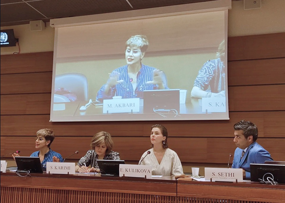 À Genève, au Conseil des droits de l’homme des Nations Unies, ILA œuvre à attirer l’attention sur la répression de la liberté d’expression artistique.